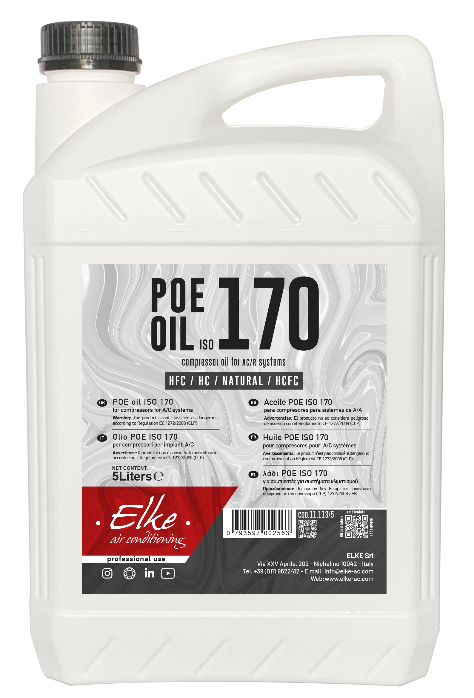 ELKE POE 170 – tai aukštos kokybės, didelės klampos poliolioesterio (POE) pagrindo sintetinė alyva, skirta profesionaliam naudojimui šaldymo ir oro kondicionavimo (ŠVOK) sistemose, veikiančiose su moderniais fluorintais šaltnešiais. Dėl savo savybių ši alyva ypač tinka sistemoms su dideliu šiluminiu ar mechaniniu apkrovimu.