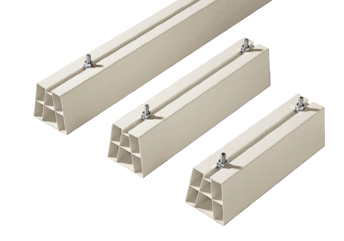 PVC pastatomos atramos – tai ekonomiškas, tačiau tvirtas įrenginių montavimo sprendimas. Dėl trapecinės formos jos gali atlaikyti iki 400 kg apkrovą vienam blokui. Pasirenkami galiniai dangteliai suteikia profesionalią ir estetišką išvaizdą.