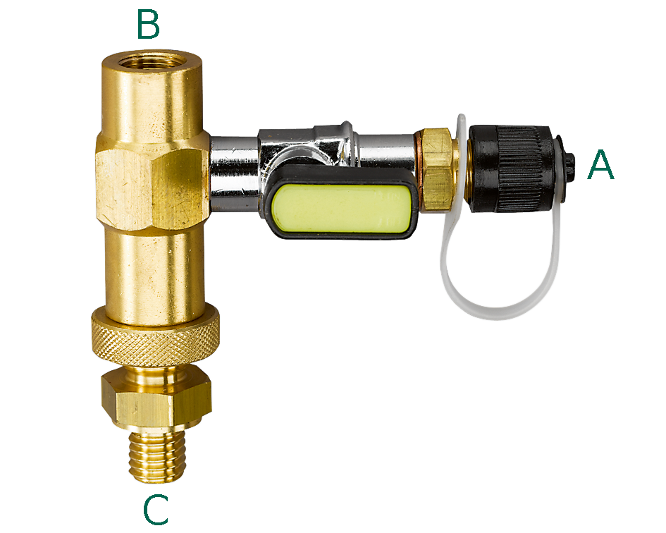 REFCO 10612-REF-ACME-LH – Šaldymo balionėlių užpildymo adapteris ant REFCO svarstyklių. Jungtis: ACME-1/2″-16G, kairė.