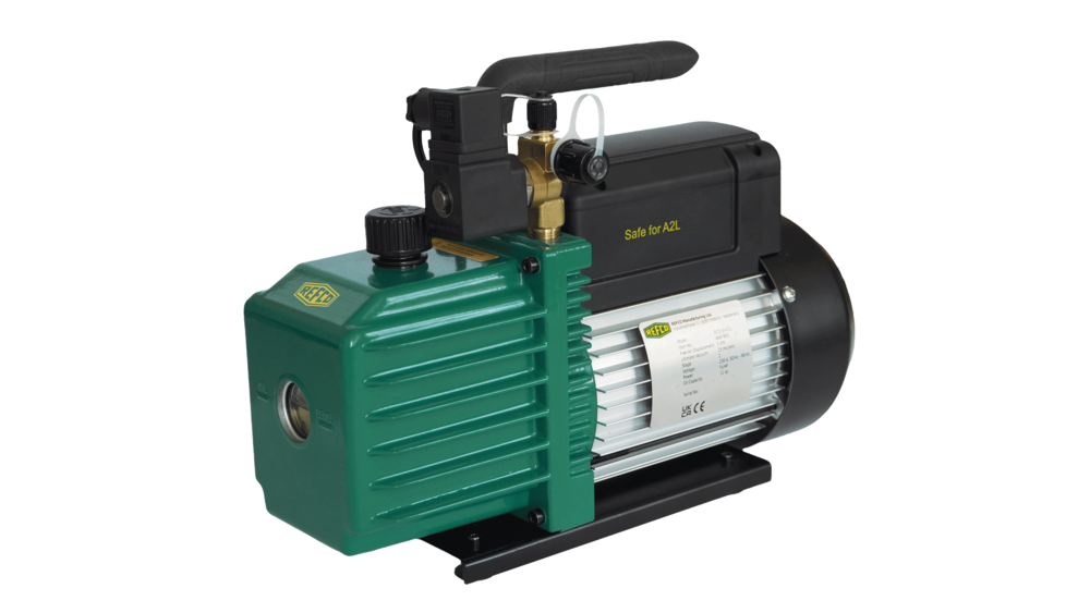 ECO serijos dviejų pakopų vakuuminiai siurbliai tinka visiems dažniausiai naudojamiems šaltnešiams, įskaitant A2L. Jie pasižymi kompaktišku aliuminio korpusu ir tvirta, patogia nešimo rankena. Didelis siurbimo našumas leidžia ženkliai sutrumpinti vakuumavimo laiką, o įrenginiai veikia itin tyliai.
