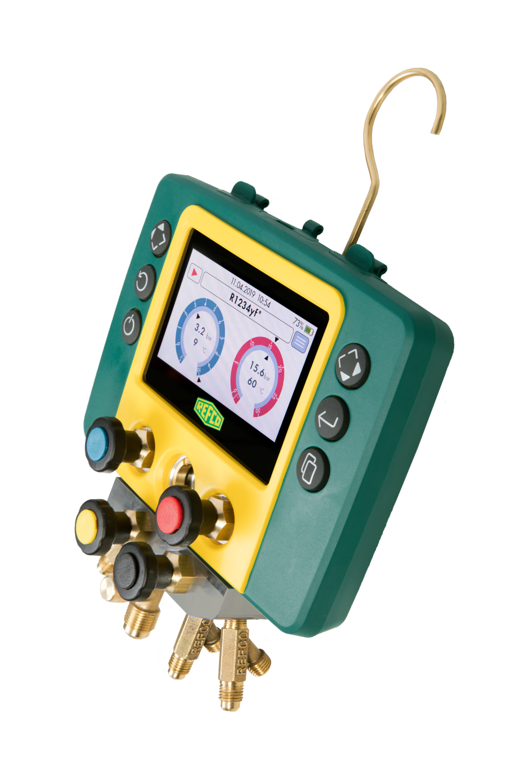 REFCO REFMATE-4-CA-TC – Skaitmeninis 4 padėčių kolektorius su 5 įkrovimo žarnomis su rutuliniais vožtuvais