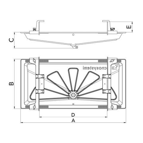 TECNOSYSTEMI „BLUE RIVER” – apsauginis stogelis (850×400 mm), pagamintas iš PMMA plastiko, su teleskopiniais laikikliais ir fiksavimo rėmu